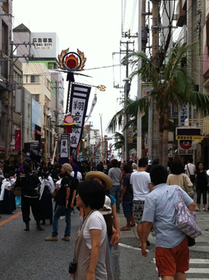 先週末、那覇〜国際通りは旗頭や大綱挽きで盛り上がりました!