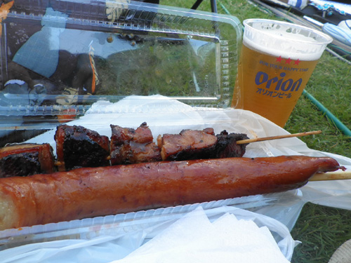 ビールと黒人のおっちゃんが焼いていたBBQを買ってエイサー会場へ。