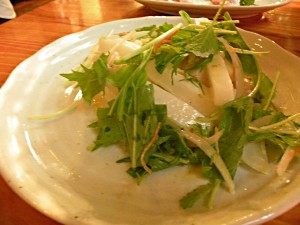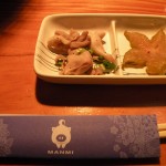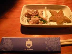 ↑ お通し「スターフルーツのピクルスと茹でホルモン」