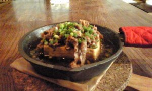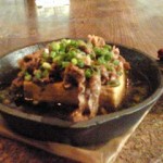 石垣牛と島豆腐をピヤーシ(島胡椒)を使った秘伝のタレですき焼き風に煮込んだ