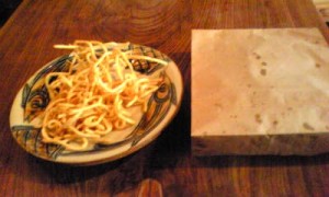 袋に入った沖縄そばを、シャカシャカ振ってお召し上がりいただきます。